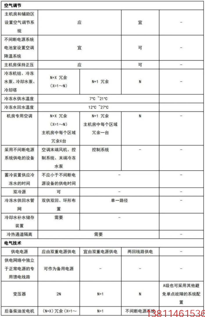 A、B、C三级机房设计要素中的各种要求和规则,如位置选择、环境要求、建筑结构、空气条件、电气技术、供电电源质量要求、机房布线、环境和设备监控系统、安全防范系统、消防等。比如,在环境要求项下的主机房开机温度标准中,A级和B级机房为23+/-1摄氏度,C级则为18~28摄氏度。